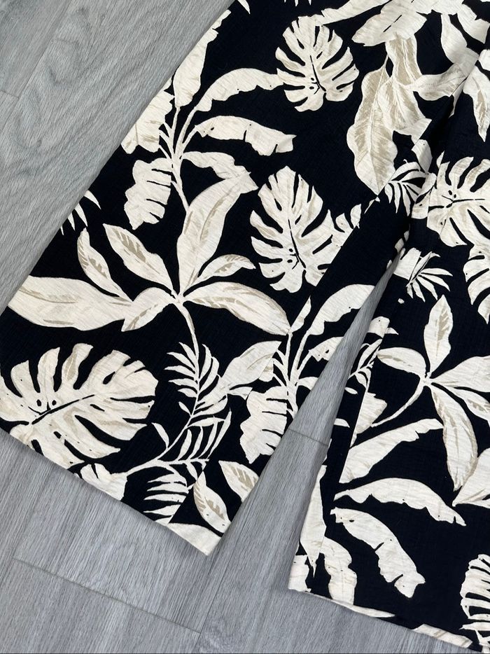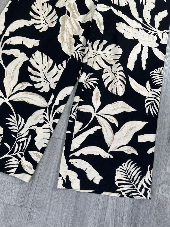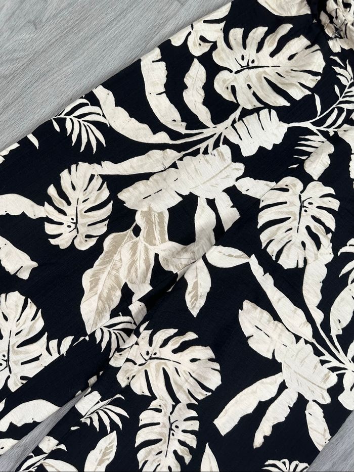 Pantalon - Excellent état - Taille 40/42 équivalent L/XL Dimensions en bas de l’annonce - Noir et beige crème - Imprimés tropicaux - Élastique à la taille - Pas d’étiquette de taille ni de matière Dimensions: - 38 à 48cm à la taille - 63cm entre jambe - 94cm de long