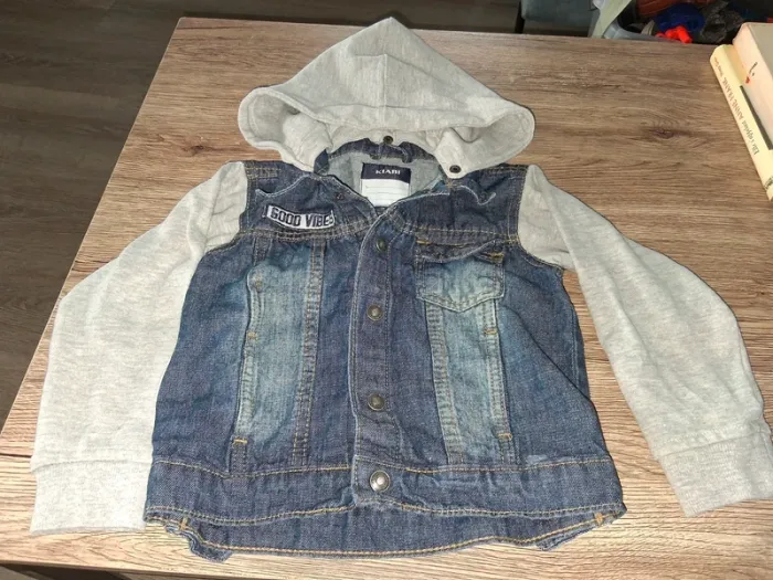 Bonjour, je vends cette veste en jean manches et capuche amovible grise de la marque kiabi taille 3ans en très bon état.
