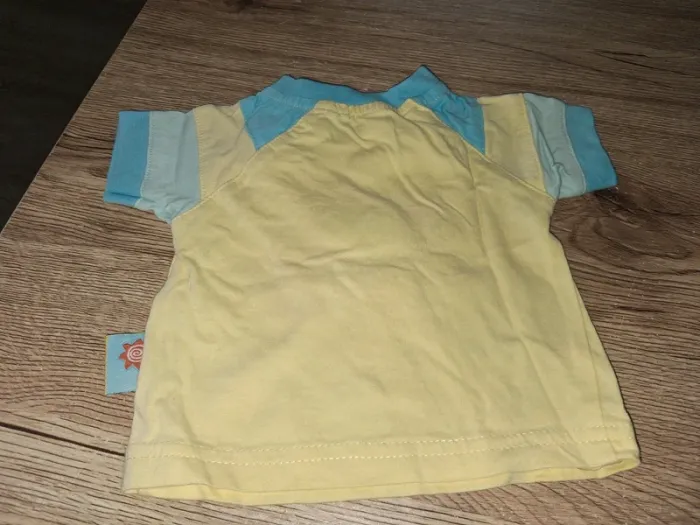 Bonjour, je vends ce tee shirt à manches courtes bleu et jaune de la marque Bougli-Bougla taille 6mois en très bon état.