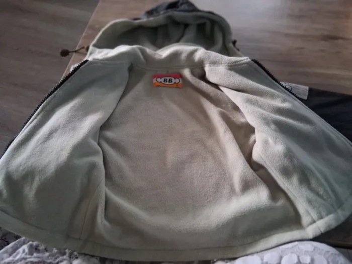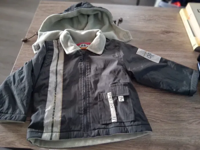 Bonjour, je vends cette veste à capuche amovible grise et beige de la marque BB taille 2ans en bon état.