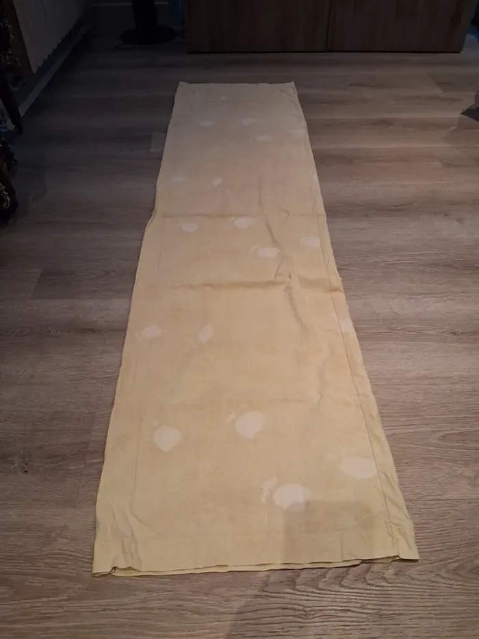 Bonjour, je vends cette housse de traversin jaune et blanc dimension 170x43cms en très bon état. Lavé maison non fumeur.