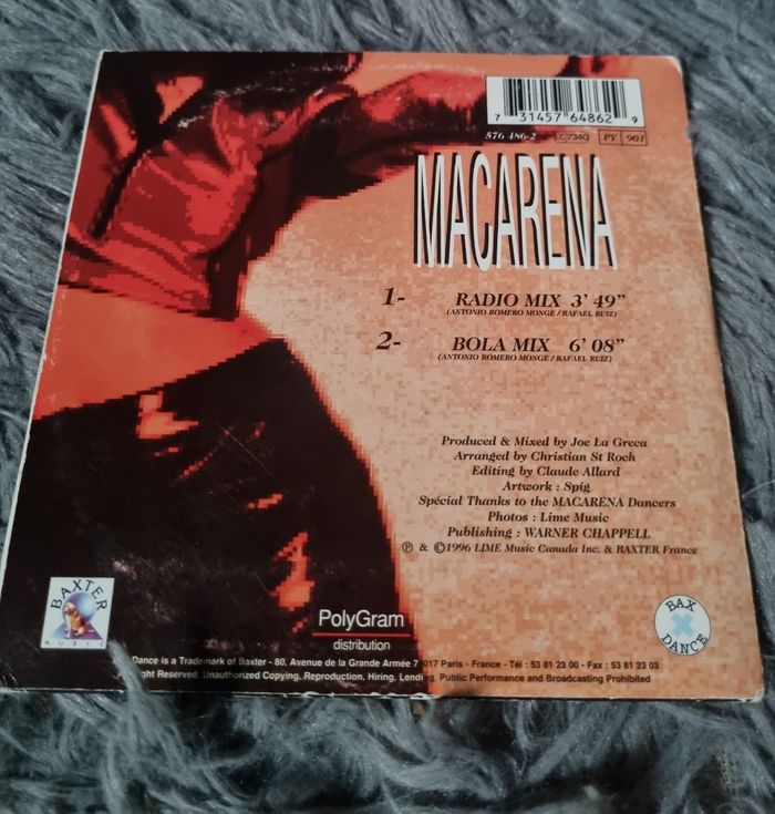 Cd Macarena Los Del Mar,légère rayures voir photo.