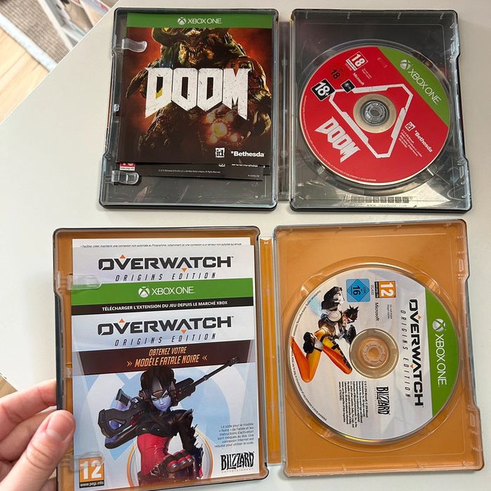 Lot 2 jeux xbox one doom overwatch origins edition