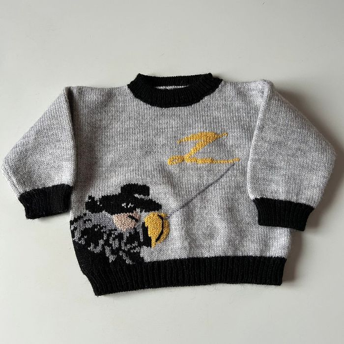Le pull a été lavé. J’ai mis une taille au hasard (se fier aux mesures ci-dessous) ⬇️⬇️⬇️ Hauteur : 30cm Largeur taille : 33cm Longueur d'un bras : 21,5cm Très bon état ! #zorro #pullvintage #dessinanime #vintage