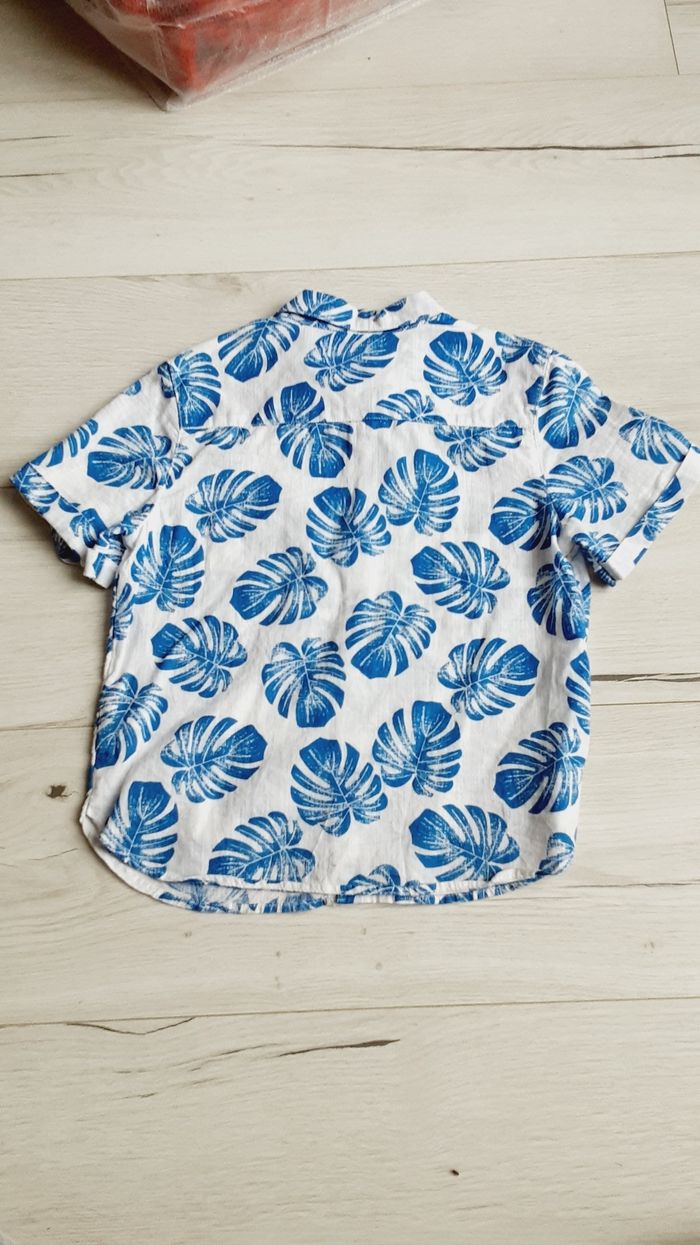 Vêtement garçon chemise manches courtes blanche motifs feuilles bleues Orchestra 6 ans Neuve - photo numéro 3