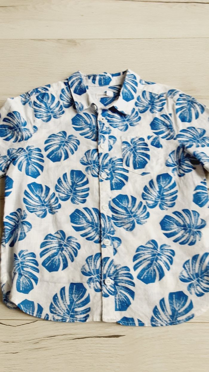 Vêtement garçon chemise manches courtes blanche motifs feuilles bleues Orchestra 6 ans Neuve - photo numéro 2
