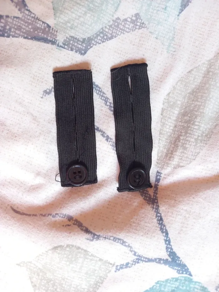 Élastiques pour agrandir les pantalons. J'en ai utilisé un pour ma grossesse (aucun achat de pantalon de grossesse du coup 😅). Le deuxième est neuf.