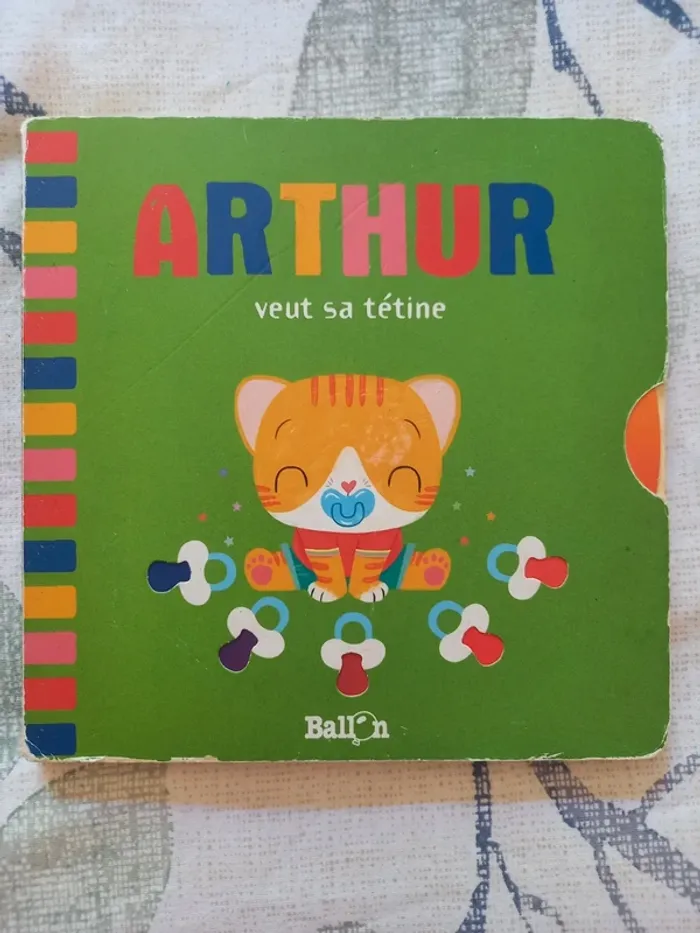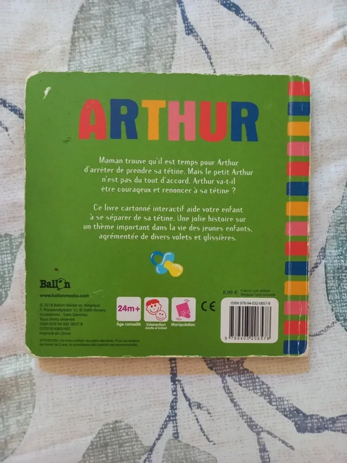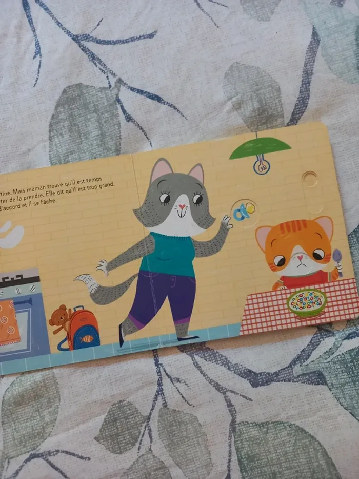Livre à manipuler sur l'arrêt de la tétine Bon état, les volets à soulever sont un peu pliés cf photo Les tétines sur la couverture peuvent changer de couleur grâce à la molette sur le côté
