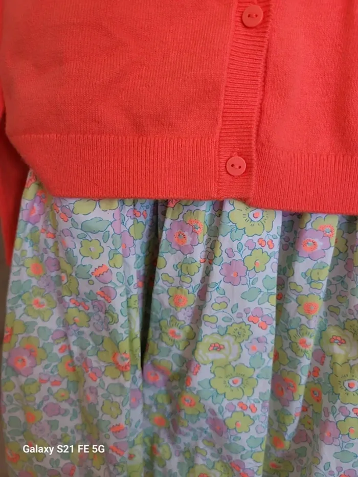Tres belle robe jacadi portée une fois pour un événement . Je peux egalement propose l ensemble avec le gilet de la meme collection (gilet orange). L ensemble serait au prix de 45 euros.