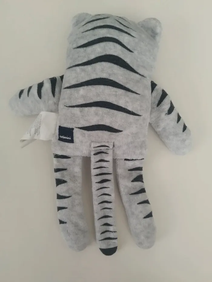 #awlbdoudou Peluche doudou Tigre rayé gris noir Catimini Bon état voir photos
