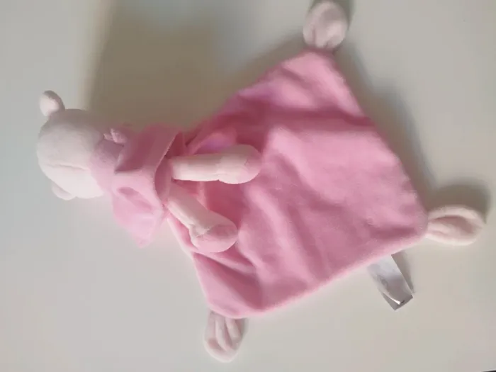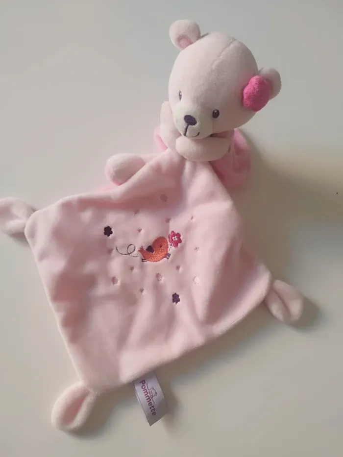#awlbdoudou Peluche doudou Ours rose Pommette Intermarché Broderie oiseau fleurs Très bon état voir photos