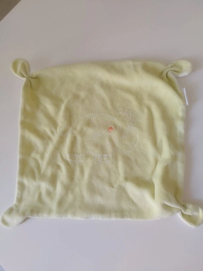 #awlbdoudou Peluche Doudou plat carré vert blanc éléphant brodé Bon état Sans étiquette de marque ou lavage