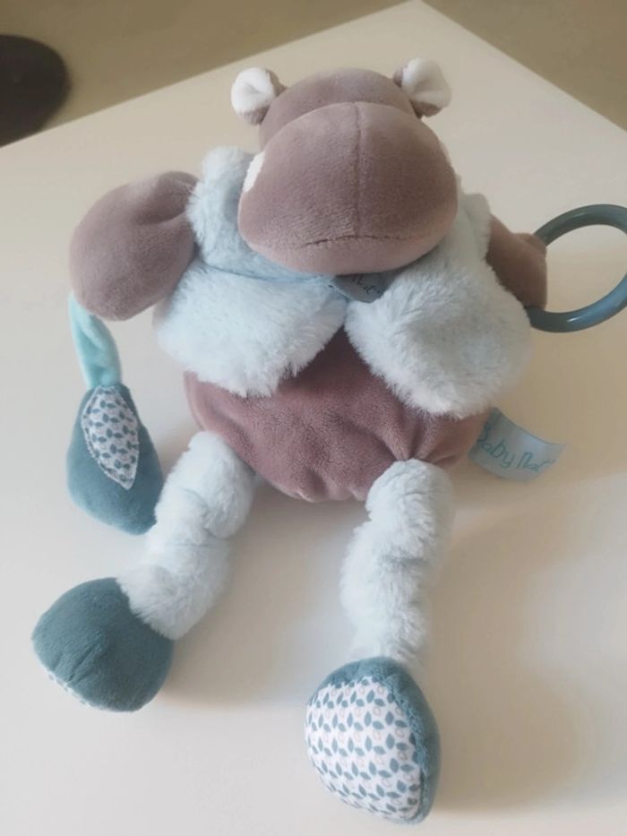 #awlbdoudou Peluche doudou Hippopotame Bazile pantin d'activités BN0545 Babynat Très bon état voir photos