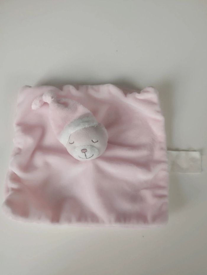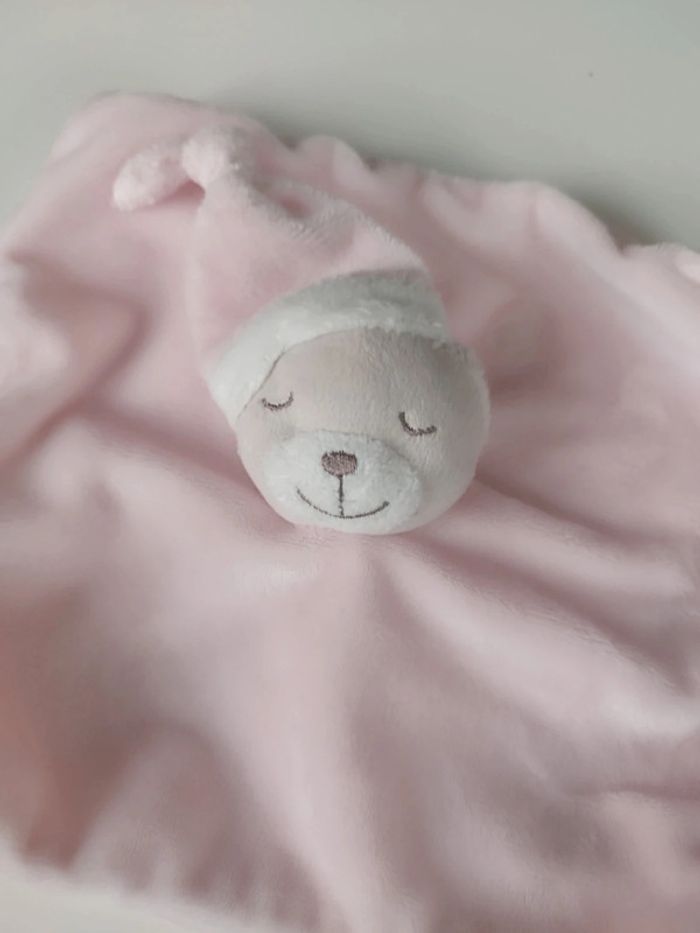 #awldoudou Peluche doudou plat carré ours dormeur rose bonnet Kimbaloo Bon état étiquette effacée voir photos