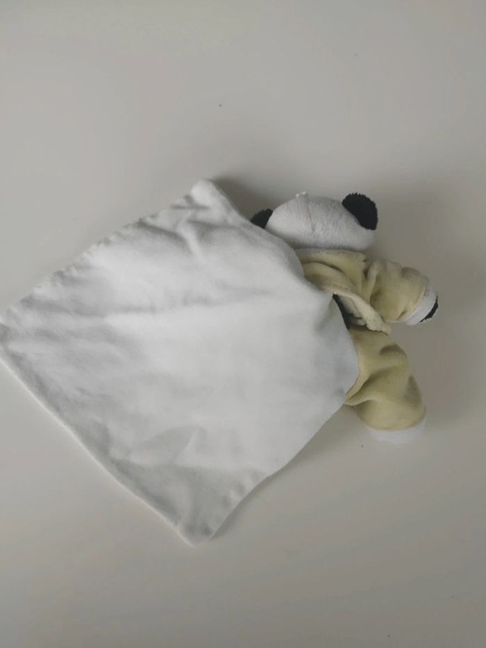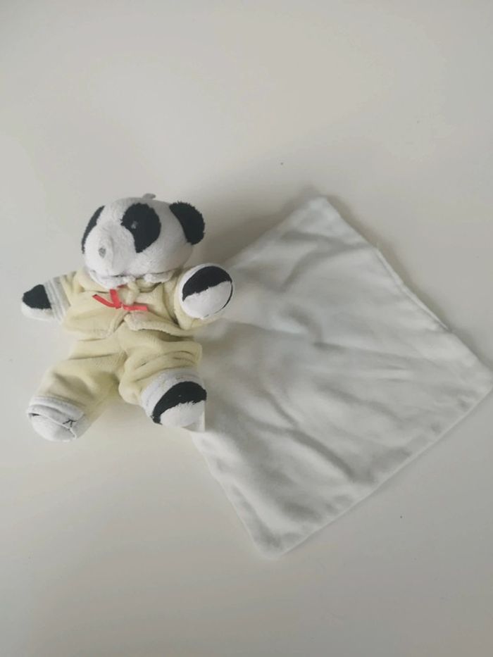 #awlbdoudou Peluche doudou mouchoir Panda pyjama vert Berlingot Bon état voir photos