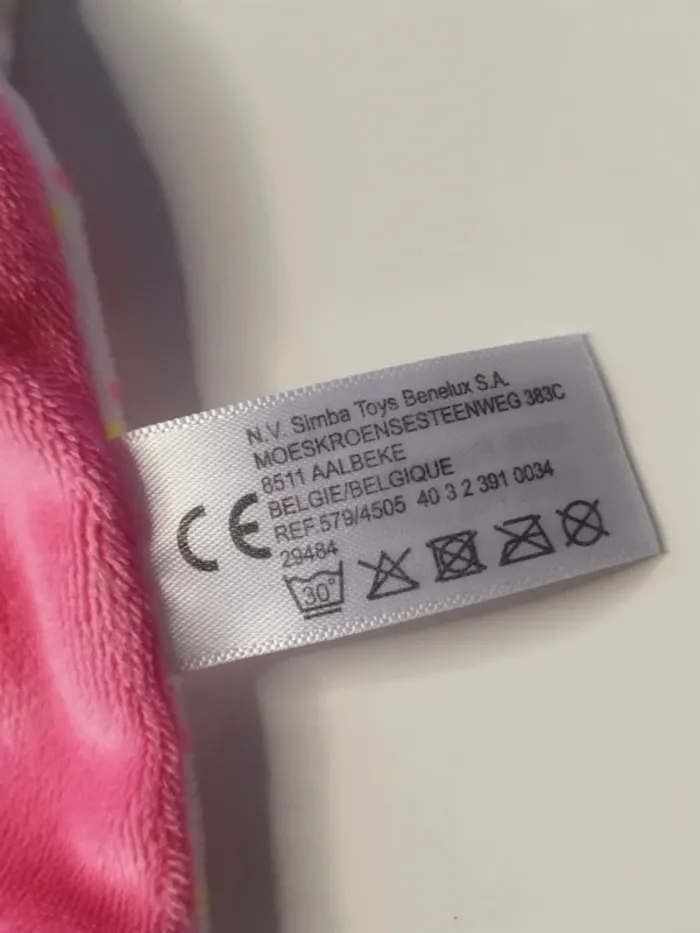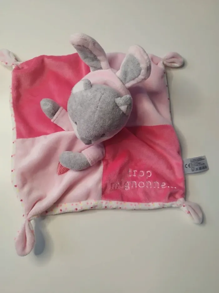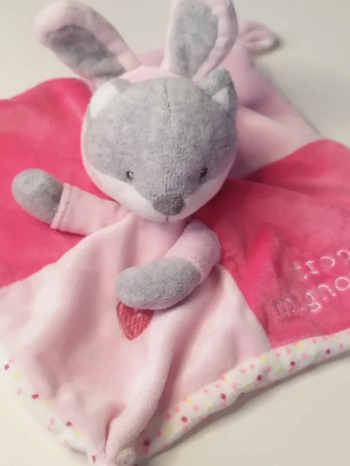 #awlbdoudou Peluche doudou plat Renard déguisement lapin rose broderie coeur "Trop mignonne" Nicotoy Simba toys Très bon état voir photos