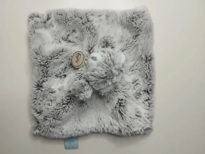 #awlbdoudou Peluche doudou plat gris blanc Baby Nat Ours thème Flocon BN051 oeil noir plastique nez brodé gris ancien logo Très bon état voir photos
