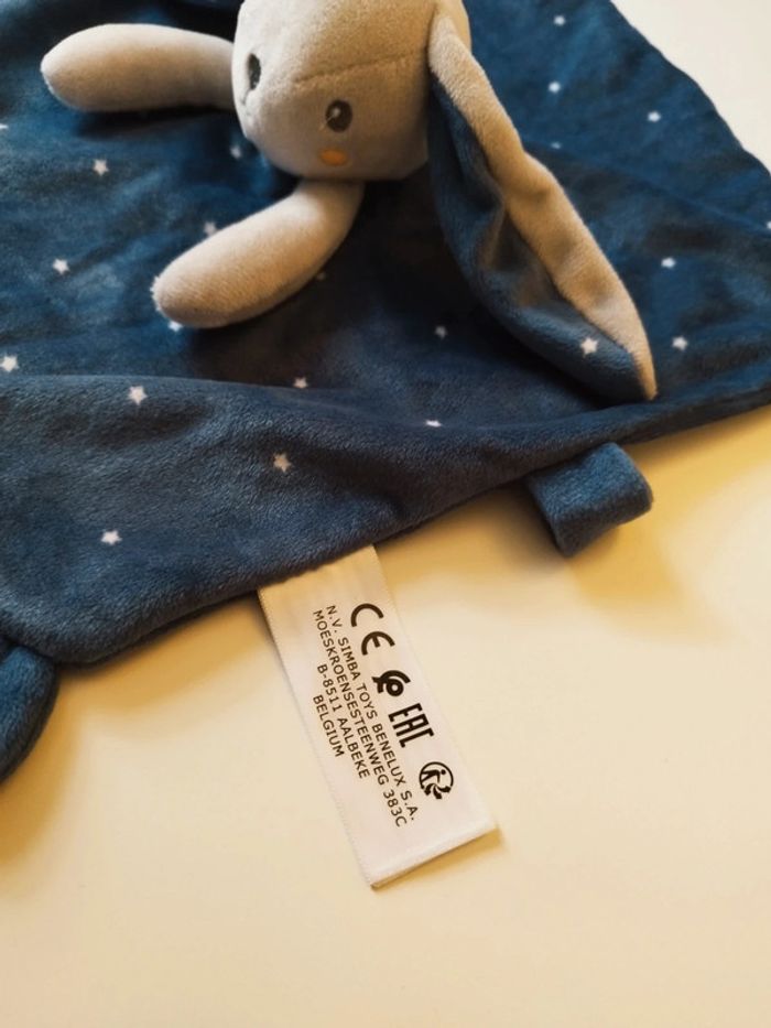 Peluche Doudou plat lapin bleu étoile Simba toys attaché tétine Très bon état #awlbdoudou #awlbbebe #awlbpeluche