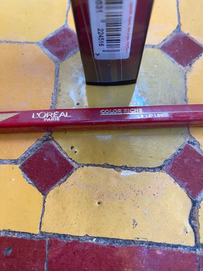 Un. Rouge à lèvres de chez L’Oréal référence 975 divine et un contour des lèvres de chez L’Oréal.