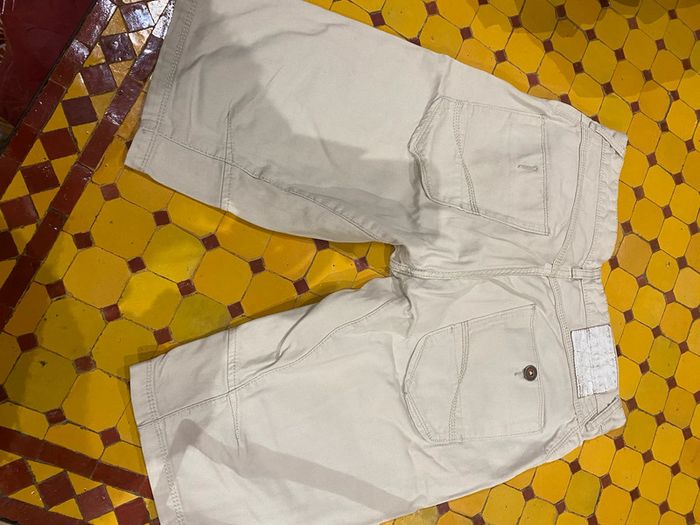 Bermuda beige, marque Celio, taille 40 légère, petite tache qui peut s’enlever au lavage voir photo