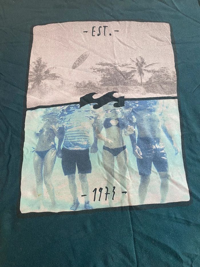 T-shirt manches courtes, marque Billabong. Taille S vert canard. Très bon état.