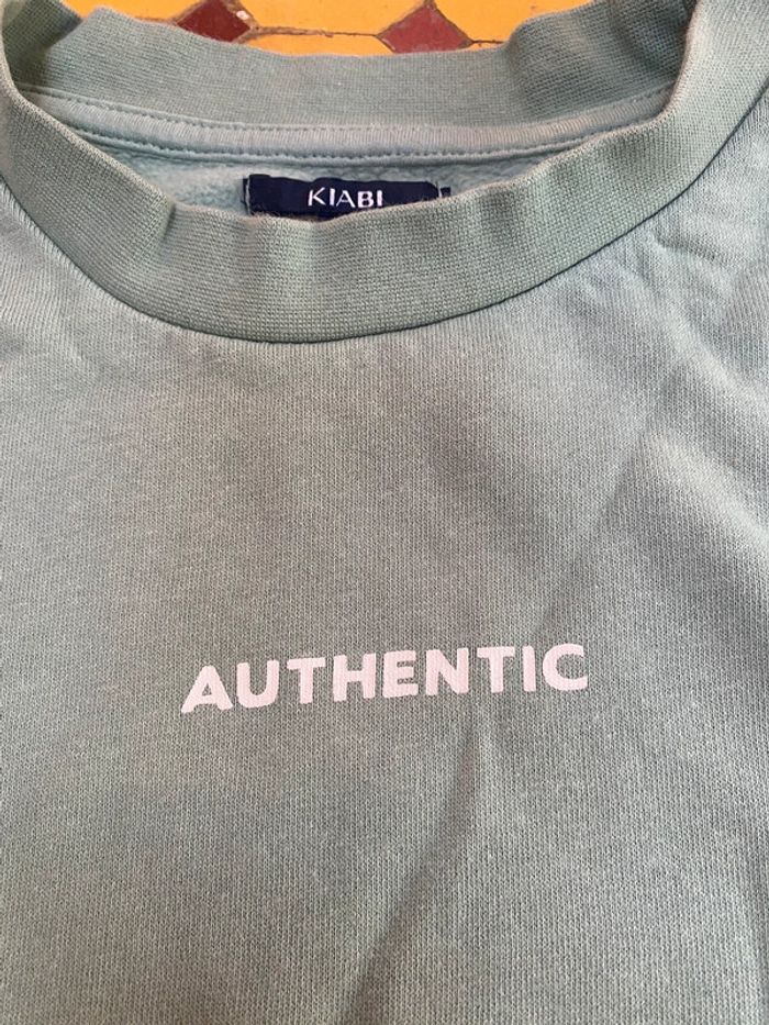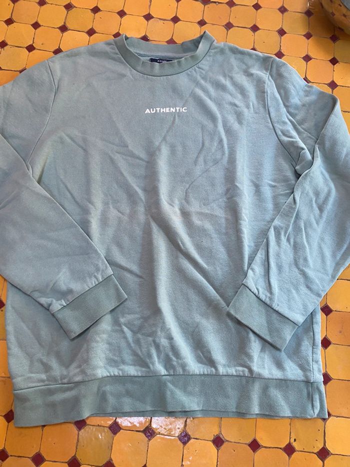 Puis le Sweat, sans capuche vert amandes, neuf, sans étiquette, taille L, marque Kiabi