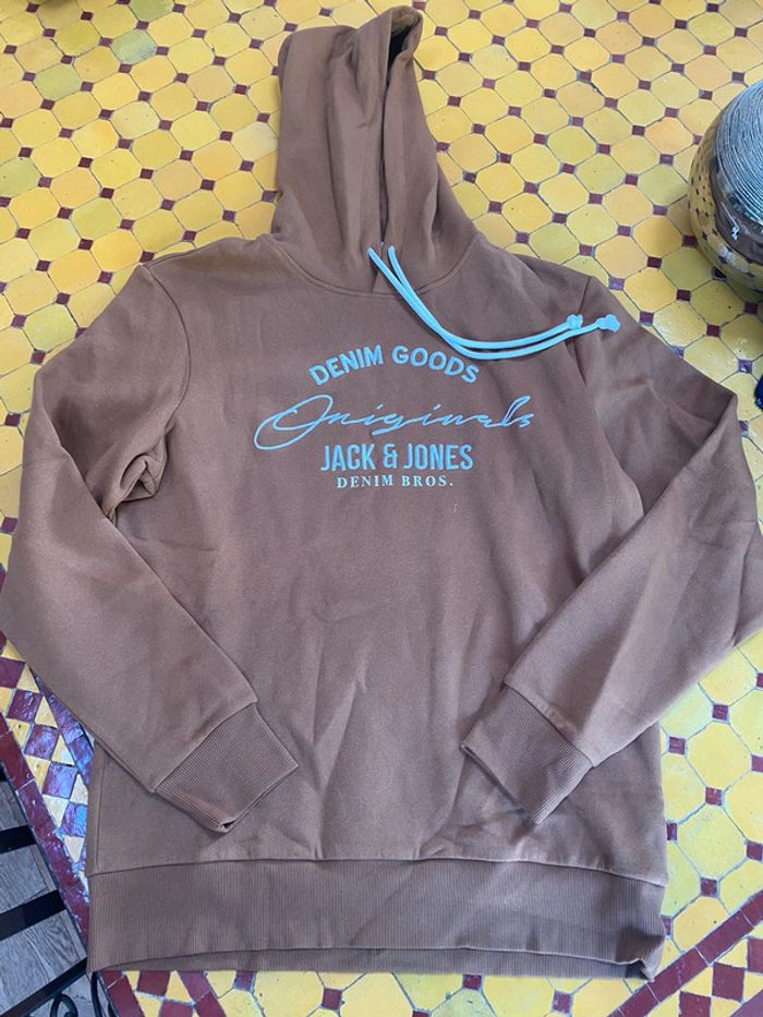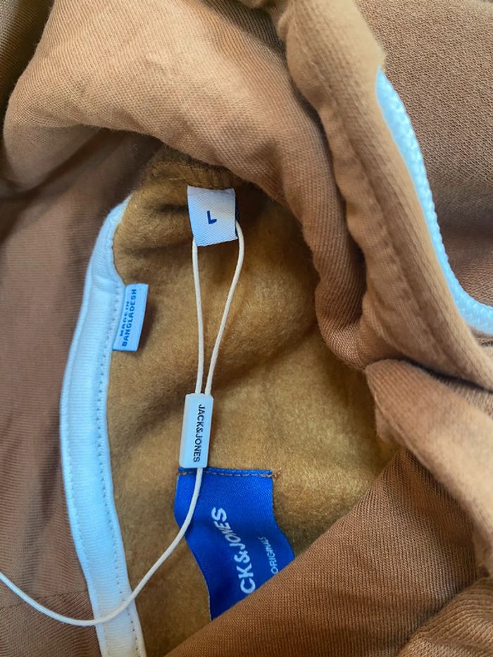 Sweat marron à capuche blanc et marron. Taille L neuf