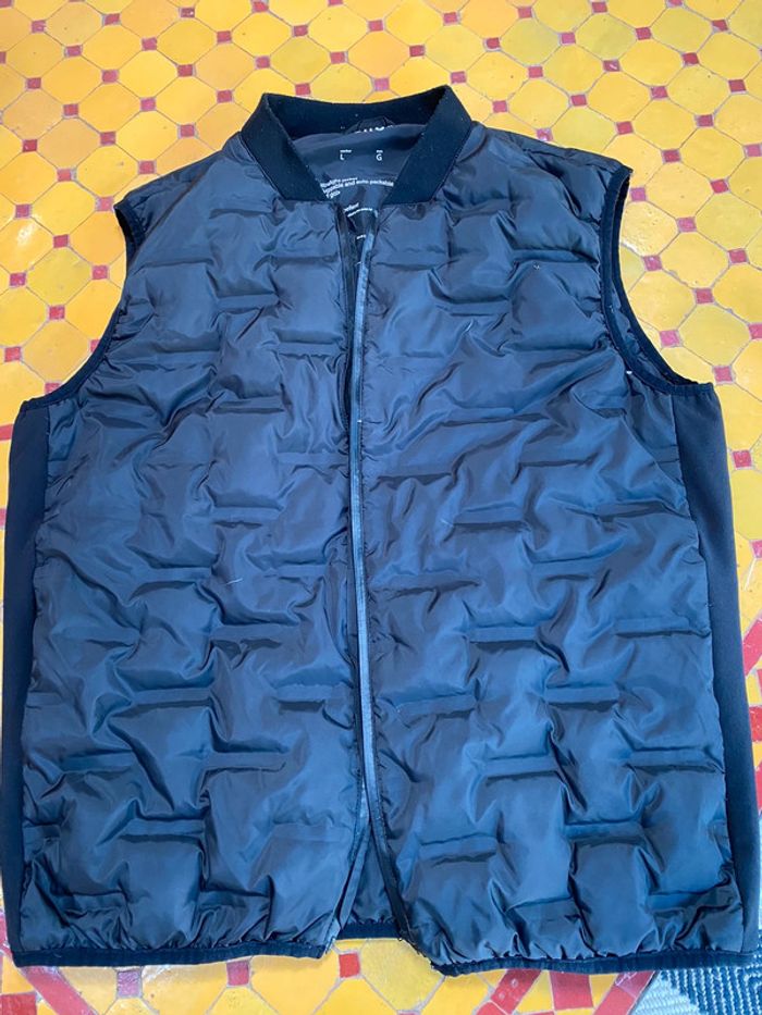 Blouson matelassé, sans manches imperméable, marque Celio. Taille L. Fermeture éclair aux poches et fermeture Leclerc centrale, plusieurs poches intérieur, très très peu porté en plume.
