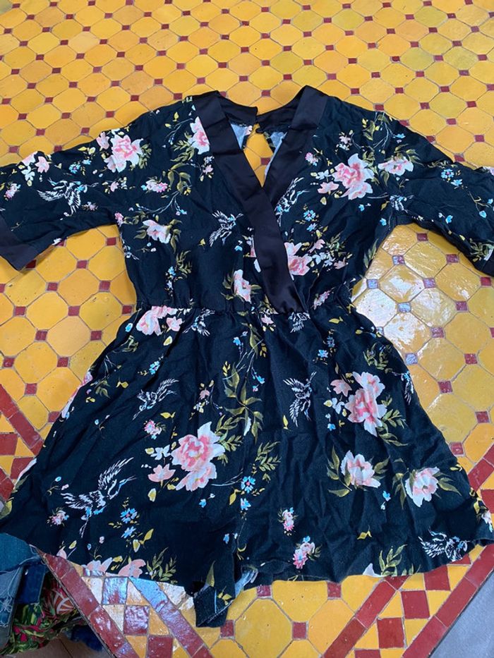Combi short, style kimono, croisé devant avec deux boutons au niveau du cou pour l’attacher dos nu
