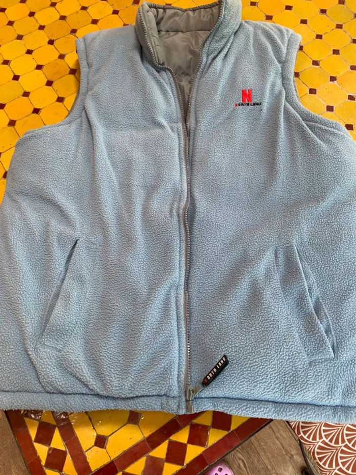 Doudoune sans manches réversible, très épaisse bleu ciel intérieur gris marquer 16 ans mais représente taille M