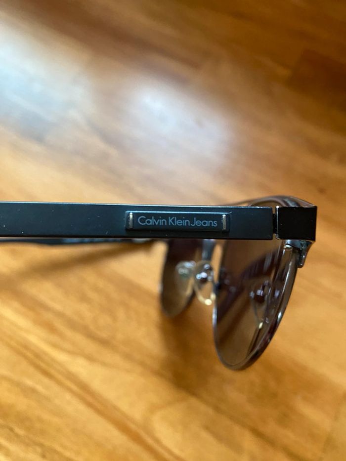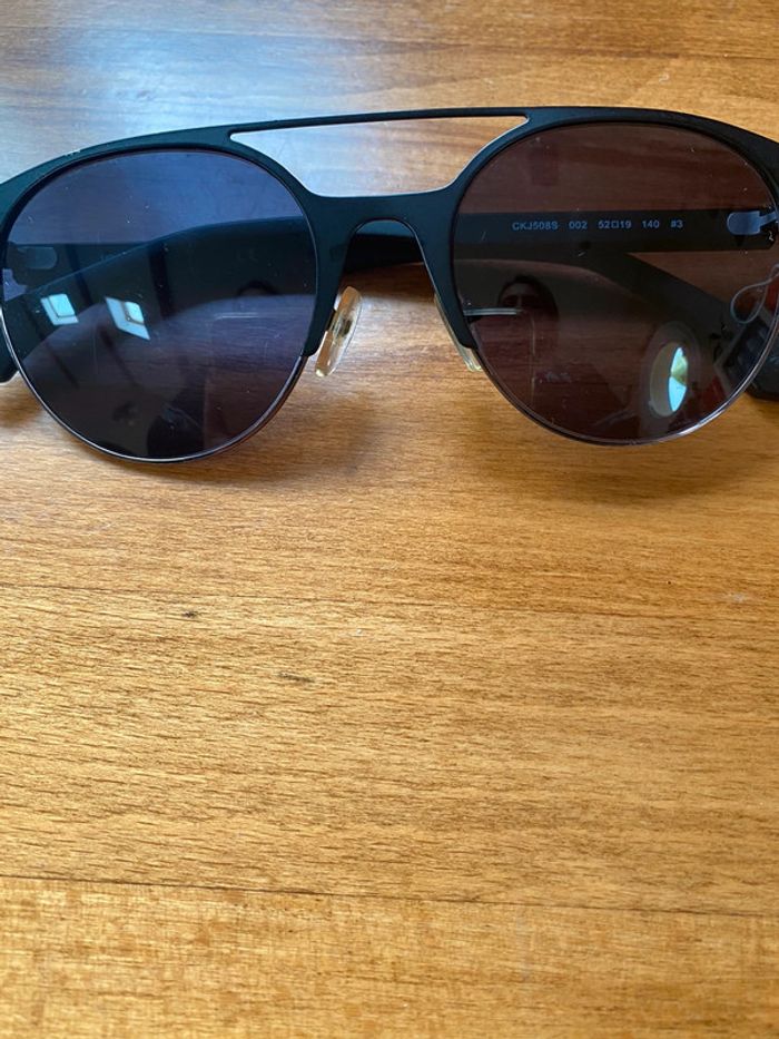 Lunett de soleil authentique verre noir acier brosse réf ckj508s encore sur le site à 184 e porté quelques hures très proche du neuf sans étuis