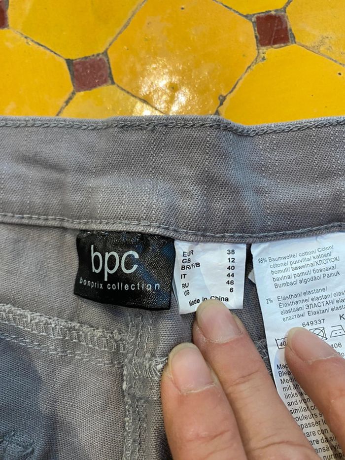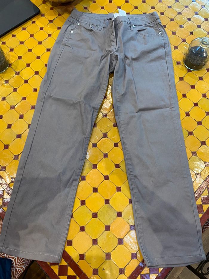 Pantalon style, jean droit couleur gris taille 38