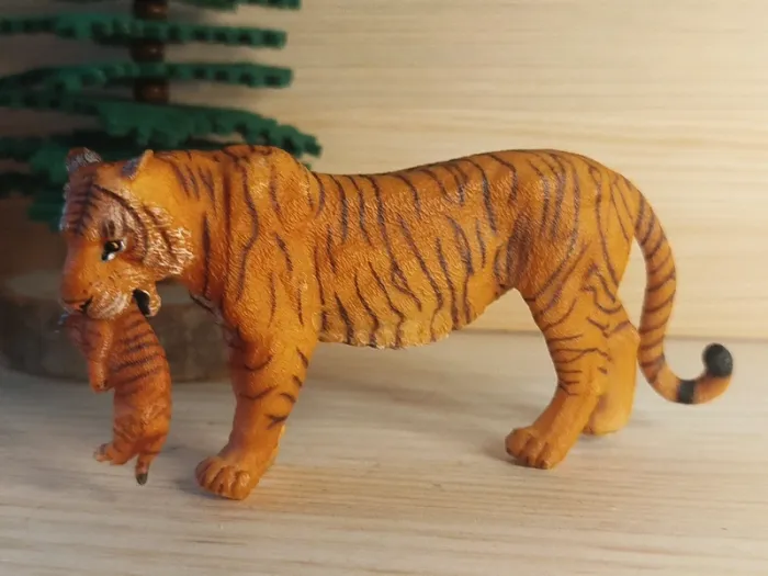 PAPO tigresse et son bébé dans la gueule Figurine animal de la savane - photo numéro 5