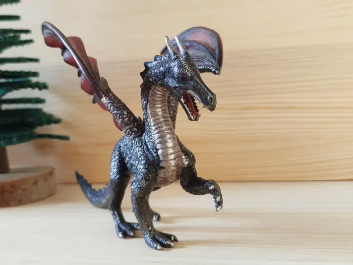 Figurine dragon argenté et bordeau Animal imaginaire - photo numéro 1