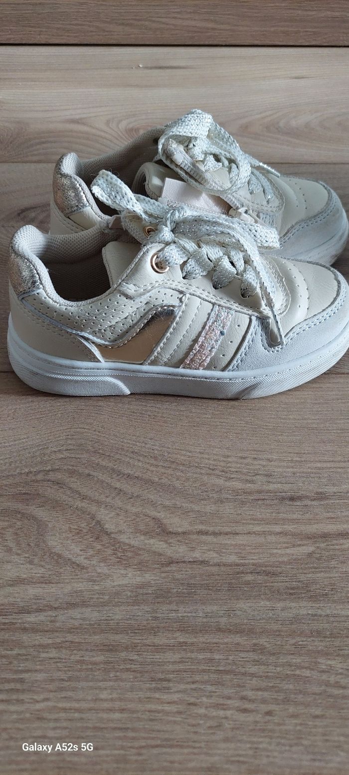 Baskets beige/dorées , portées seulement 3 fois. Taille 24, elles sont en parfait état.