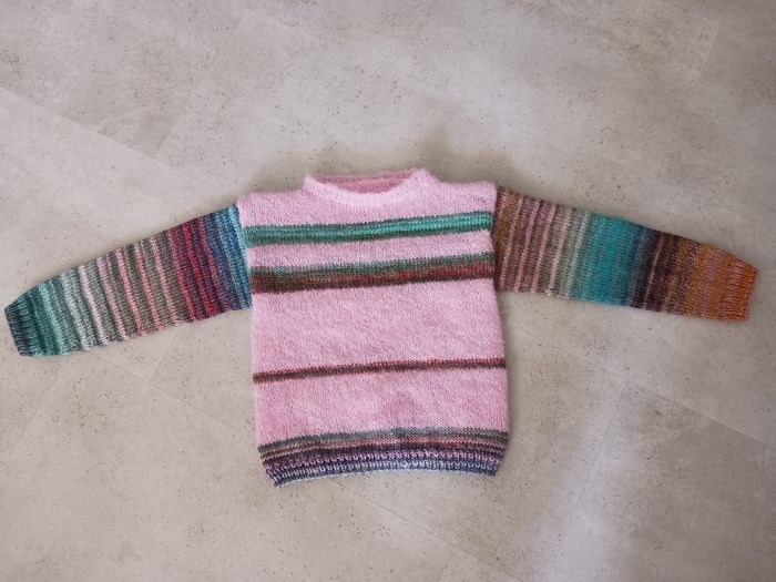 pull tricoté main rose mohair et rayé 8/10 ans Phildar Neuf