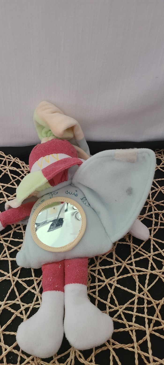 Doudou lutin coquin bleu rouge jaune vert miroir SUCRE D'ORGE 67