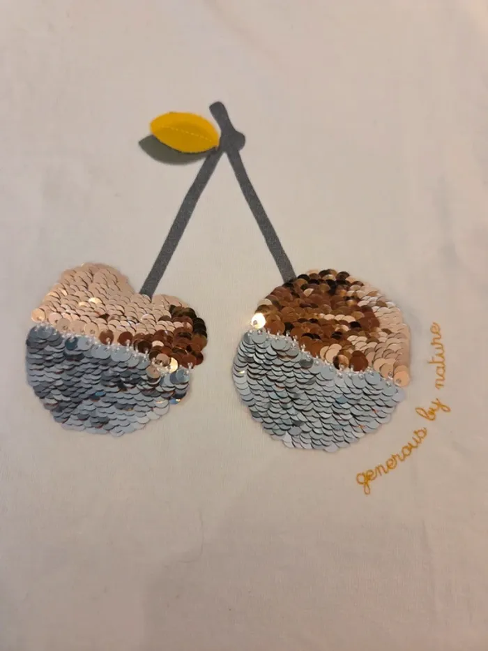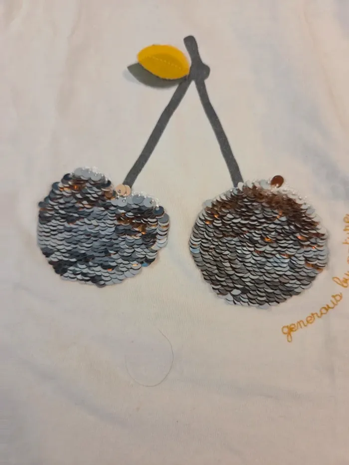 T shirt blanc cerise a sequins réversibles. Tres bon etat, je n'ai pas vu de tâches mais sur le blanc possible d'avoir des micro tâches que je n'ai pas vu. Taille 8 ans okaidi Envoi rapide et soigné. #8ansloulyd
