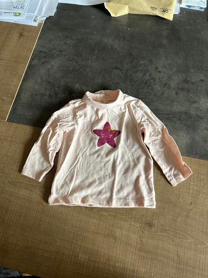 T-shirt manches longues, t-shirt col roulé bébé fille, du pareil au même, 9 mois - photo numéro 1