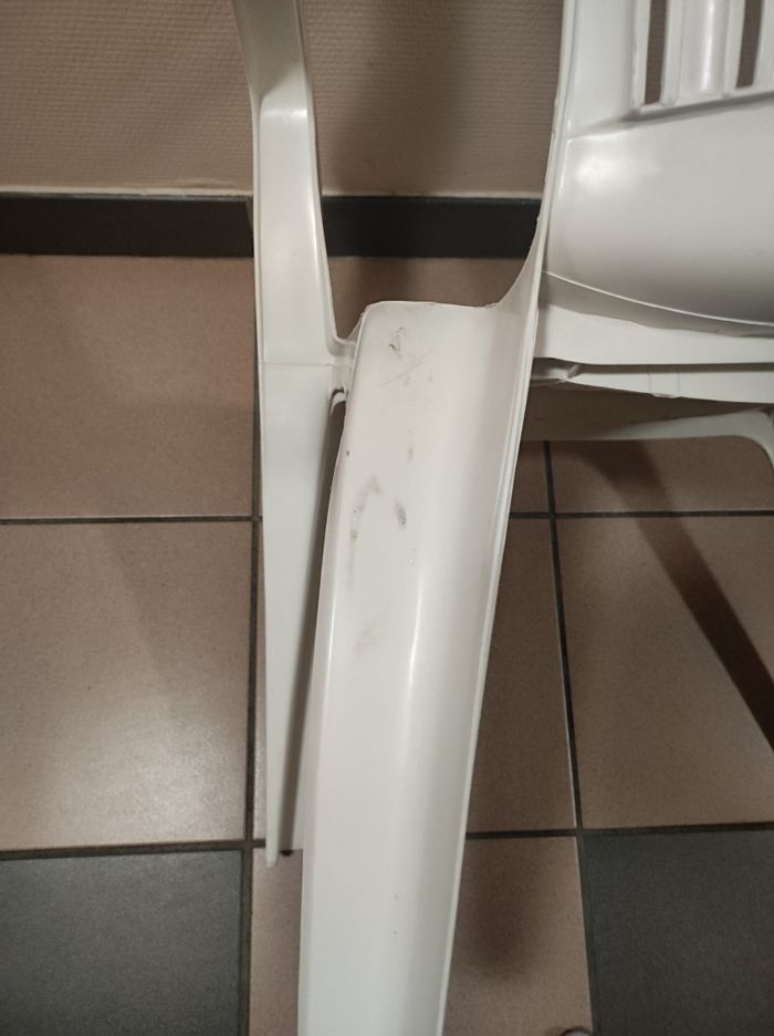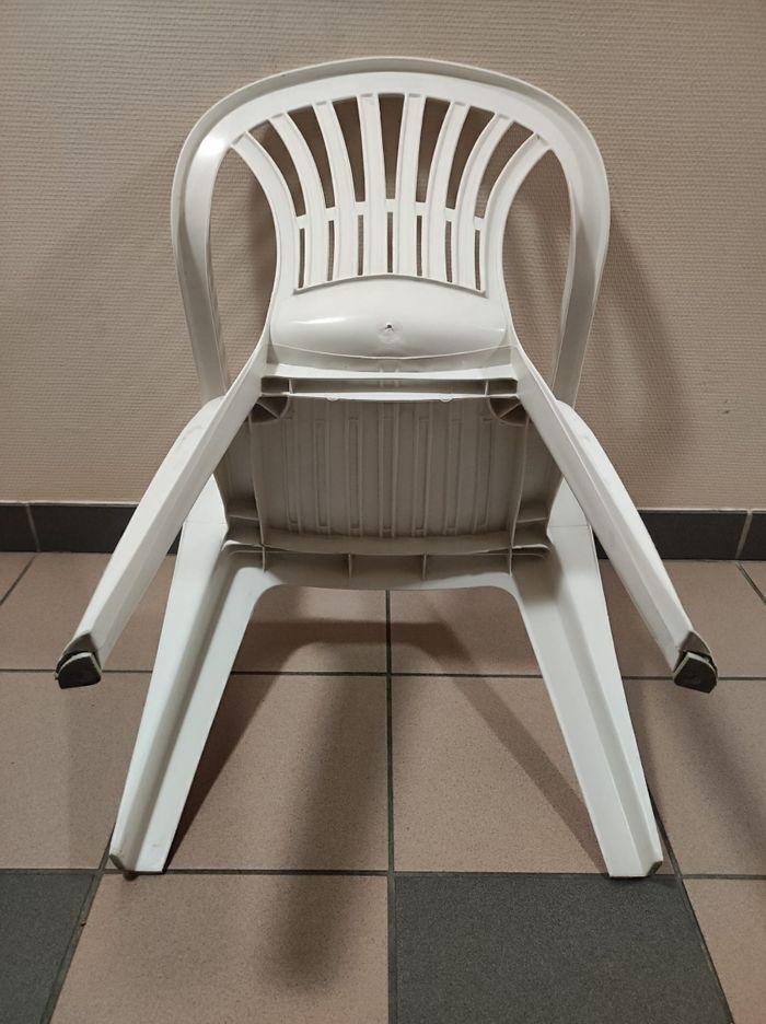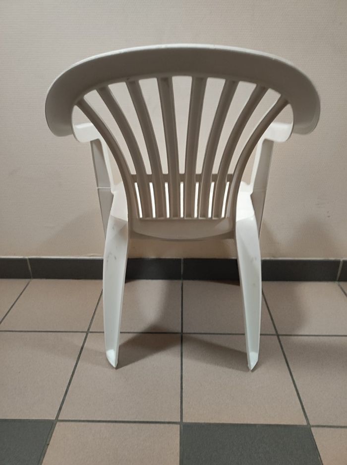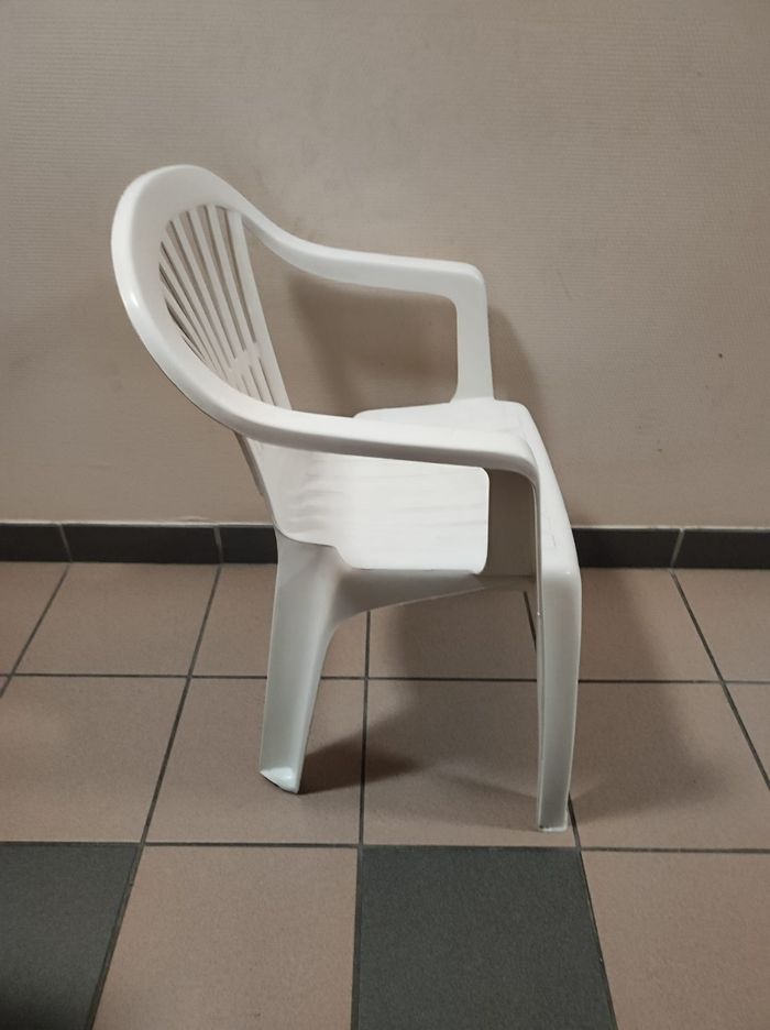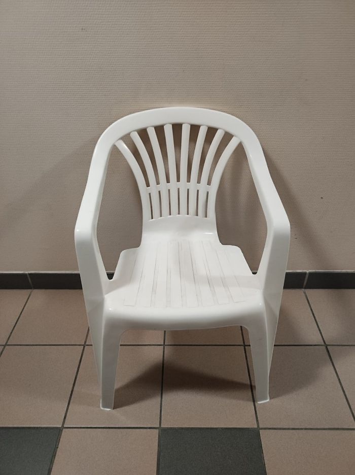 Chaise de jardin blanche en plastique. En très bon état, n'est pas casser mais peut avoir quelques traces ( cf photo ). Pas d'envoi possible, à récupérer sur place secteur Vénissieux région lyonnaise.