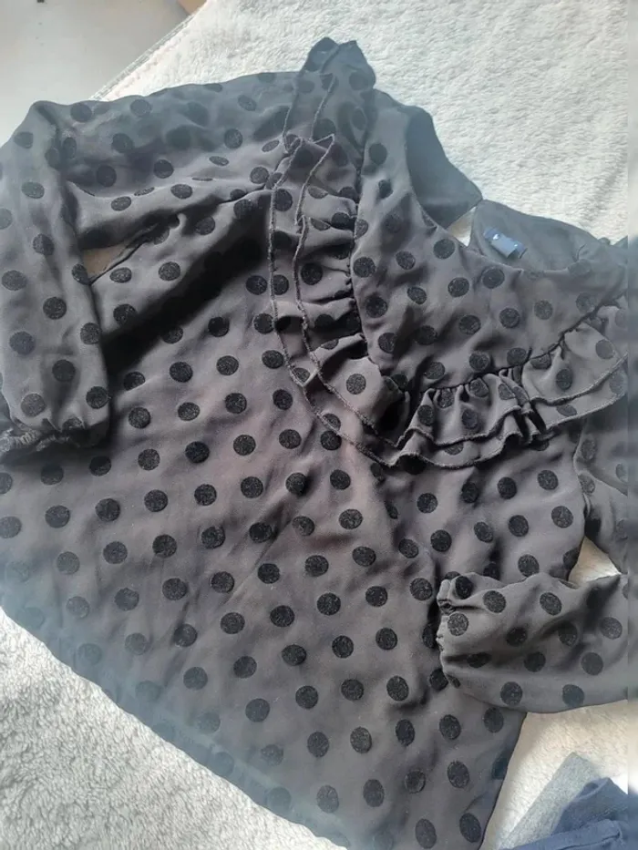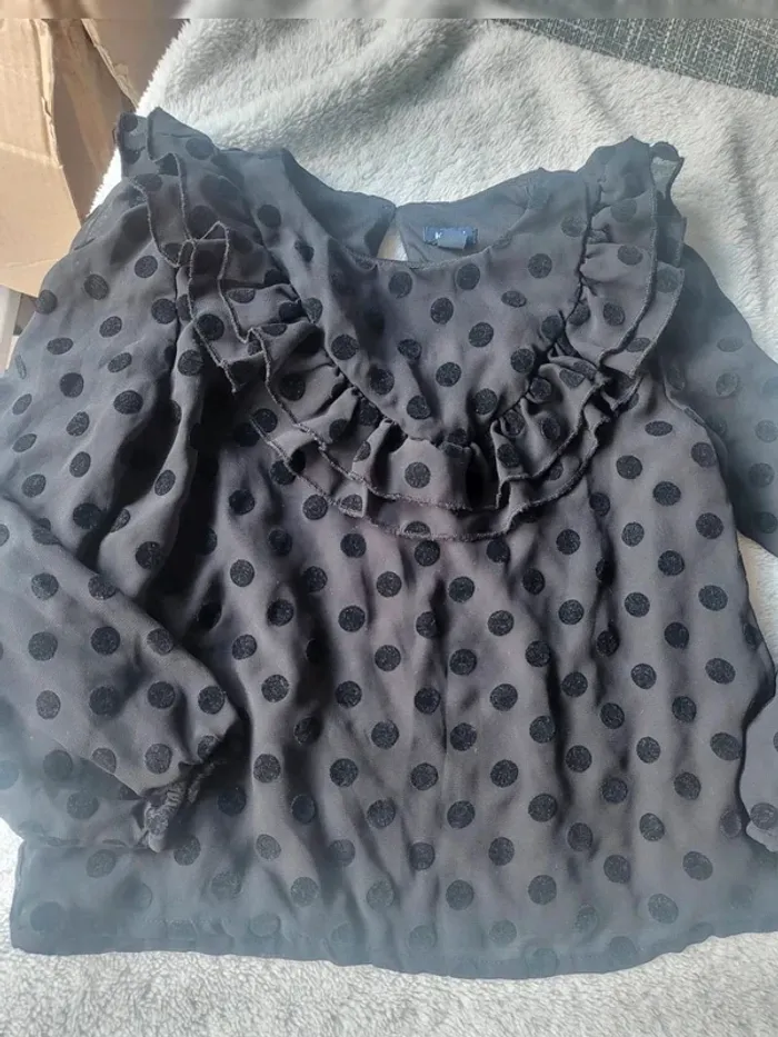 Lot de 4 hauts taille 6 ans 🌟 2 marques Du Pareil Au Même blanc et bleu marine avec dentelle décorative 🌟Un gris avec col Claudine blanc marque Jacadi 🌟 le 4 ème chemisier noir à pois très agréable à porter avec volants Les 4 en très bon état #cyndie102116fille6ans #lotdehautmancheslongues #jacadifille #dpamfille #hautavolants
