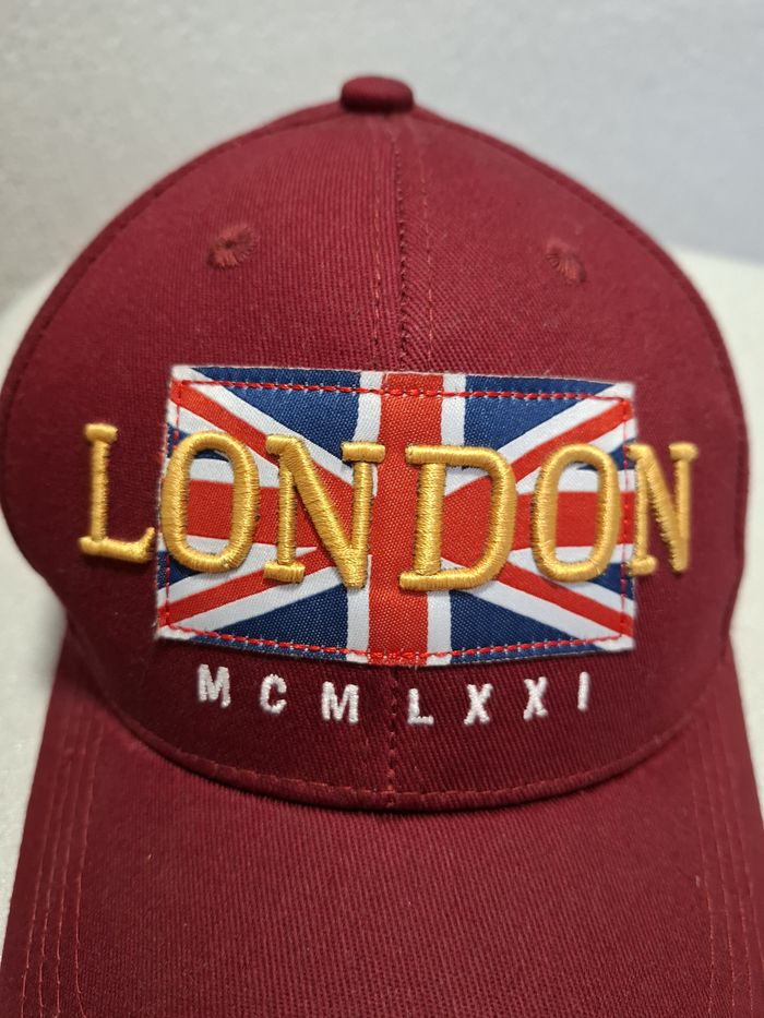 Belle casquette mixte, marque ROYAL ICONS II, couleur bordeaux, belle broderie en relief "London" sur un drapeau de l'Angleterre, taille unique, réglable à l'arrière par scratch et totalement neuve, jamais portée. Achetée 15 € à Londres .