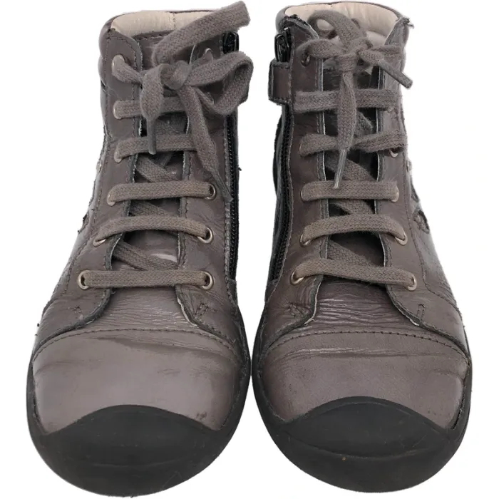 Excellent état, peu portées. Coloris : Gris Pointure : 32 Saison : Automne / Hiver Matière : semelle extérieure : Caoutchouc Genre : Fille DÉTAILS Vernis, Cuir, Baskets montantes, Lacets, Zip sur le côté Idéales pour le quotidien