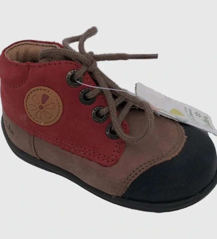 Neufs, avec étiquette. Marque : Aster Coloris : Rouge, Marron, Bleu Pointure : 21 Saison : Automne / Hiver Matière : semelle extérieure : Caoutchouc Genre : Mixte DÉTAILS 70% Cuir nubuck, 30% Caoutchouc ; Doublure : 100% Croûte de cuir L'arrière de la chaussure assure un bon maintien du pied, Fermés par lacets pour un maintien optimal de la cheville, Idéal pour les premiers pas de bébé