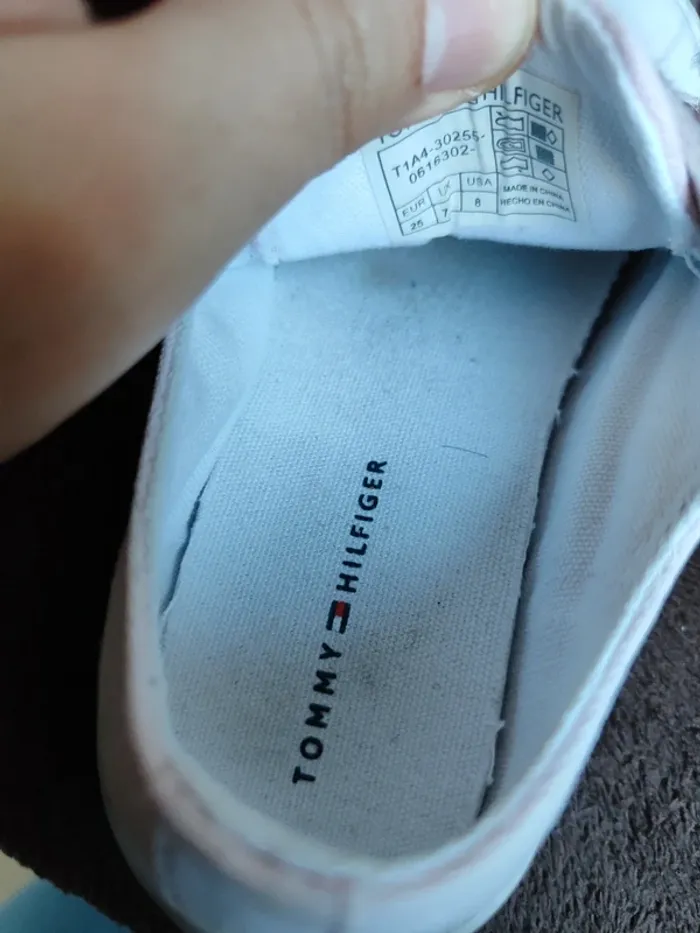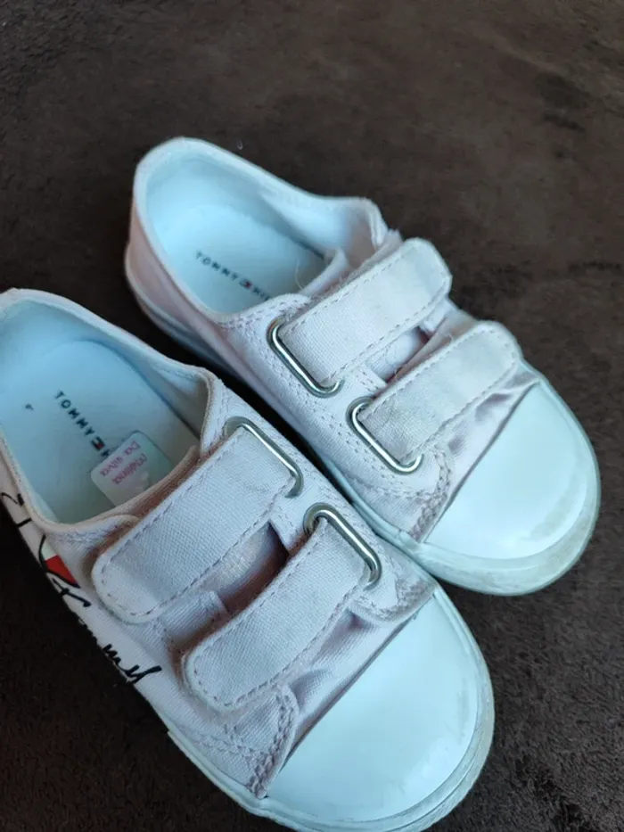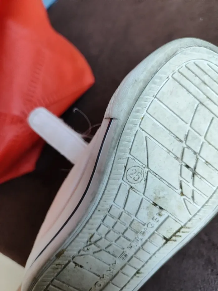 Basket de la marque tommy Hilfiger Taille 25 Pour fille Elles sont de couleur rose pâle Assez bien entretenu, quelques traces d usure.