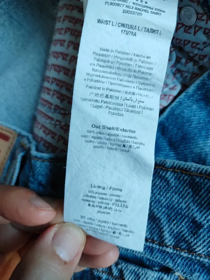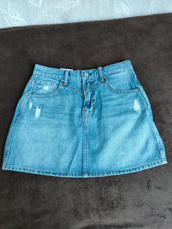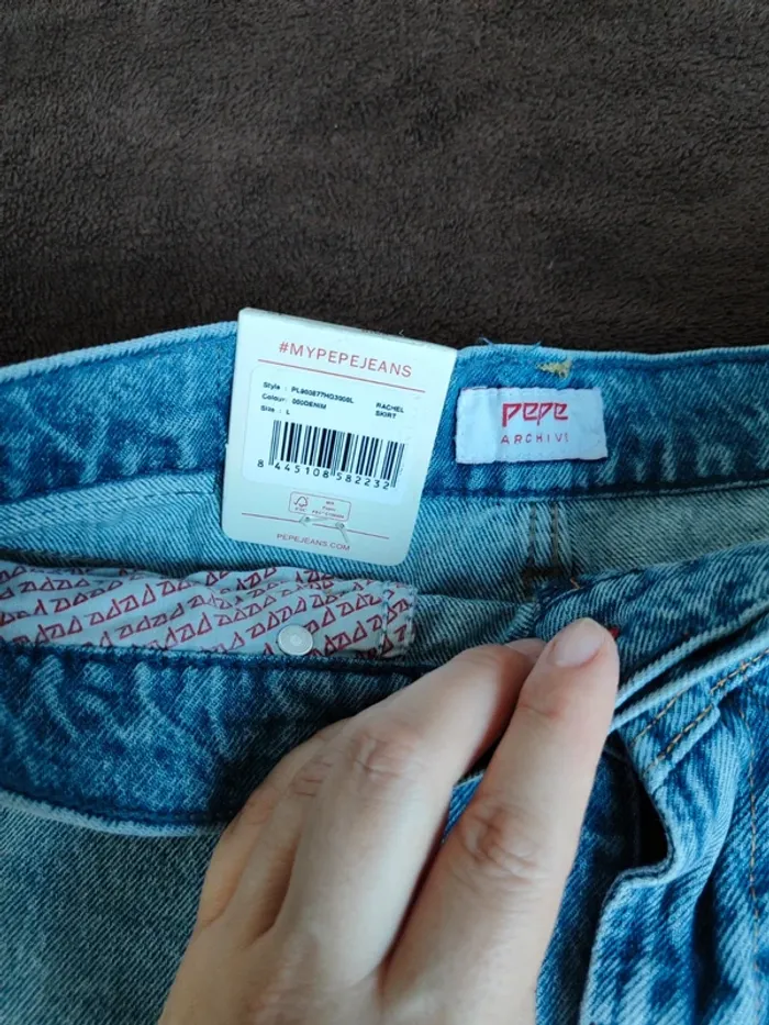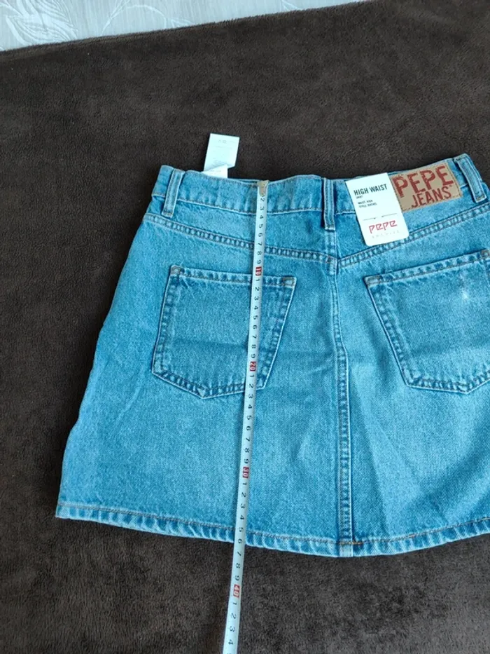 Jupe en jeans de la marque pepe jeans Neuf encore étiquetteé. La taille inscrit est taille L mais vu les mesures et pas très souple je préfère la mettre dans la catégorie de taille M.