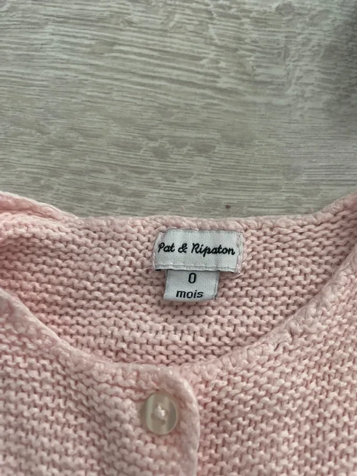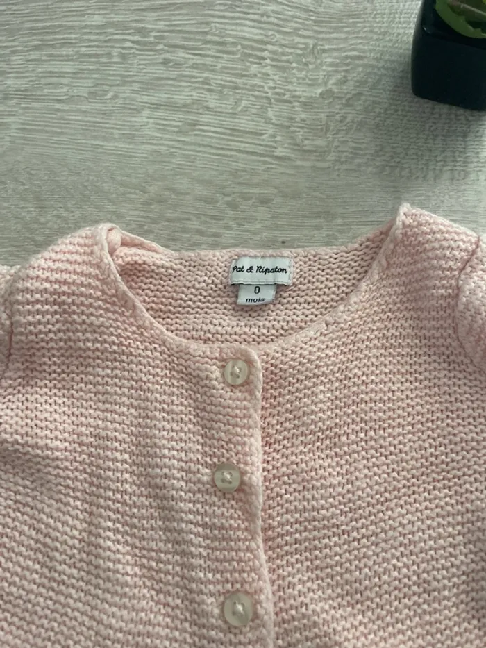 Pat et ripaton 0 mois brassière en laine rose clair très bon état