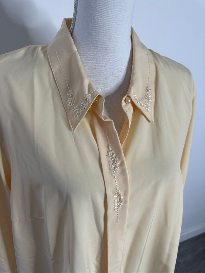 Chemisier beige crème broderies Vintage T54 7XL - photo numéro 7