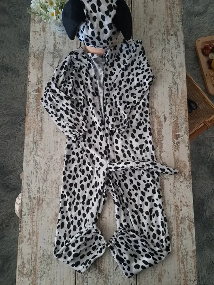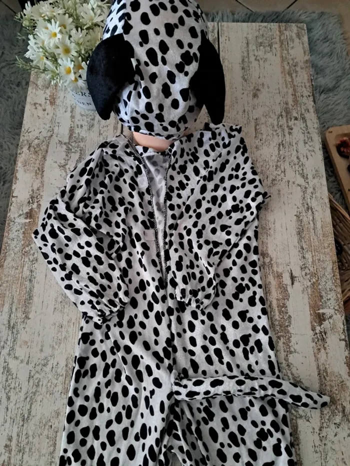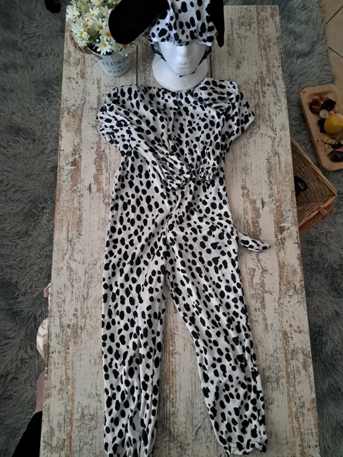 Déguisement 101 dalmatien environ 90 cm plus d'étiquette idéal pour se déguiser avec sa maman en Cruella pour Halloween ou autre