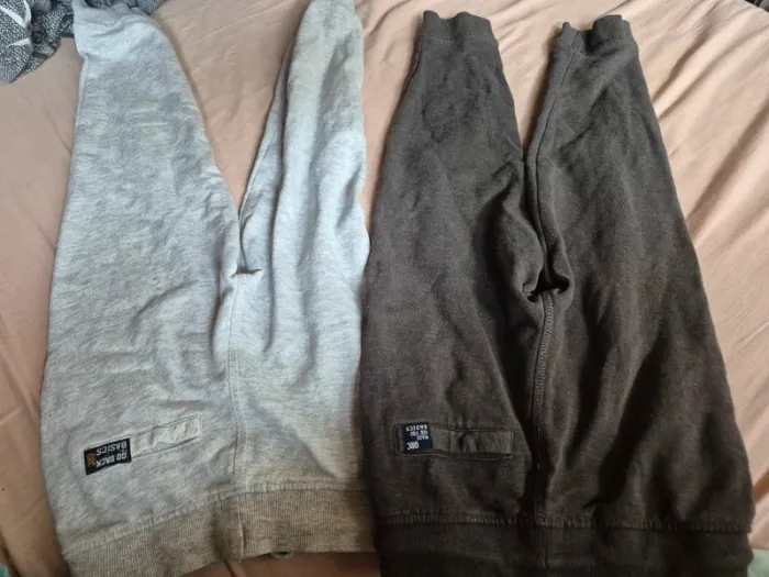 Portés, ils ont quelques bouloches mais méritent une seconde vie. Le gris clair présente une tâche.
